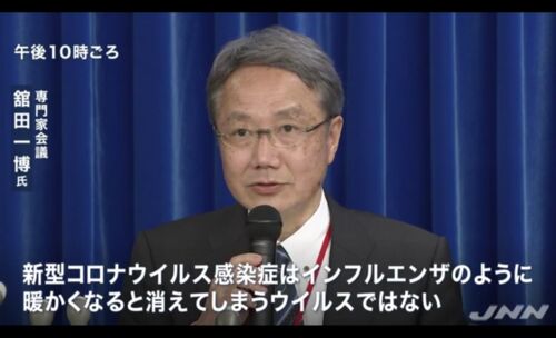 10日の政府専門家会議の記者会見(JNN、TBSニュースの画面映像から引用) 「武漢型コロナウイルス」は温暖期になっても消えない、越年も‼️ JNN、TBSニュースは次のように報じた。「専門家会議『暖かくなっても消えない 越年も』ー『新型コロナ感染症は、イン…